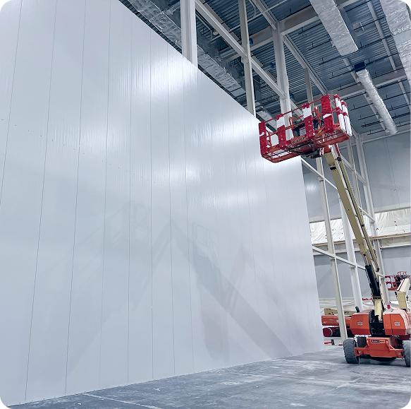 Structural design elements are critical in Precision Environments’ design process. Structural elements for gigafactories often incorporate large wall panels, stack joints, supplemental steel support, seismic considerations, bracing, hangers, expansion joints, guard rails, and parapets walls. Other gigafactory specialty products include custom ceiling supports. Panel choice is critical based on the overall gigafactory design. Insulate metal panels are manufactured with various fire ratings (1-hour or 2-hour rated are most typical), panel facing finishes, thicknesses, and spans. Specifications for panel types, finishing sealants, and lead times also need to be considered during the design phase.